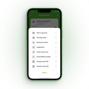 Mogućnost preuzimanja prometa preko biznis m-bank aplikacije u PDF i XML formatu.